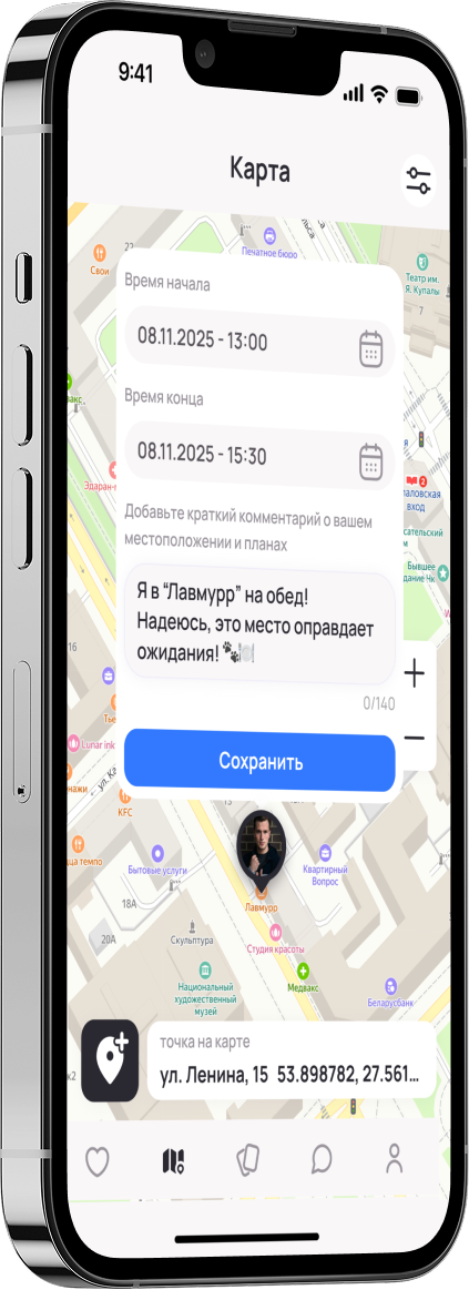 Карта создана для комфортного поиска людей рядом, но ваша безопасность — наш приоритет.